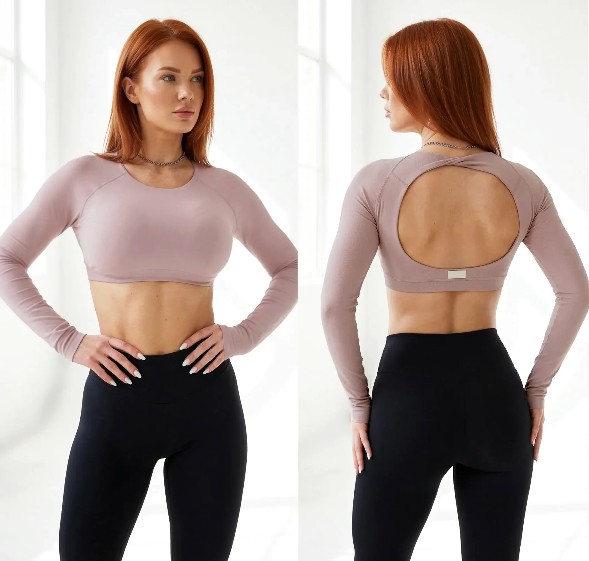 * Top cu mânecă lungă și design cu spate decupat